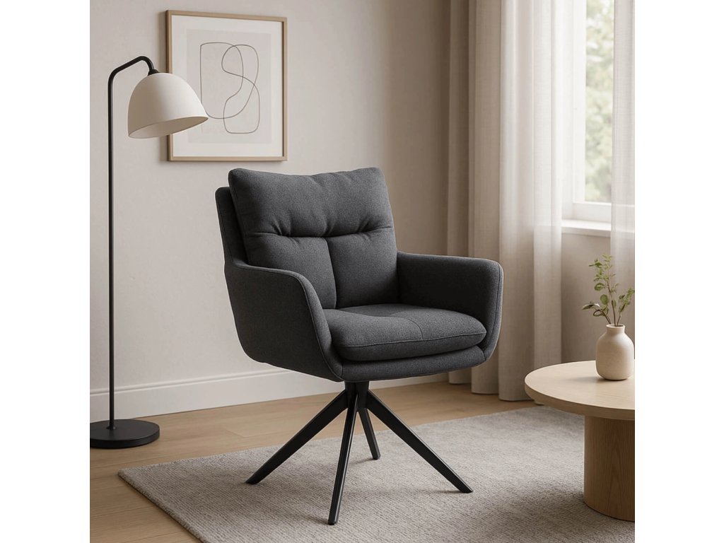Vrtljiv jedilni stol temno siva tkanina Paul