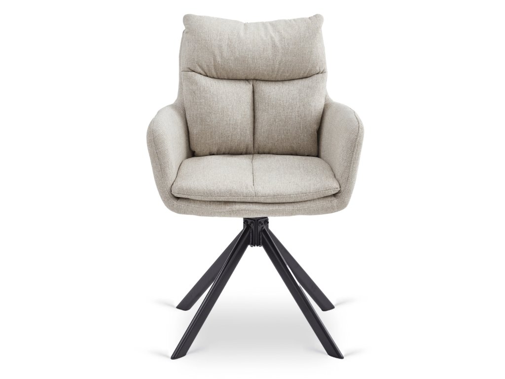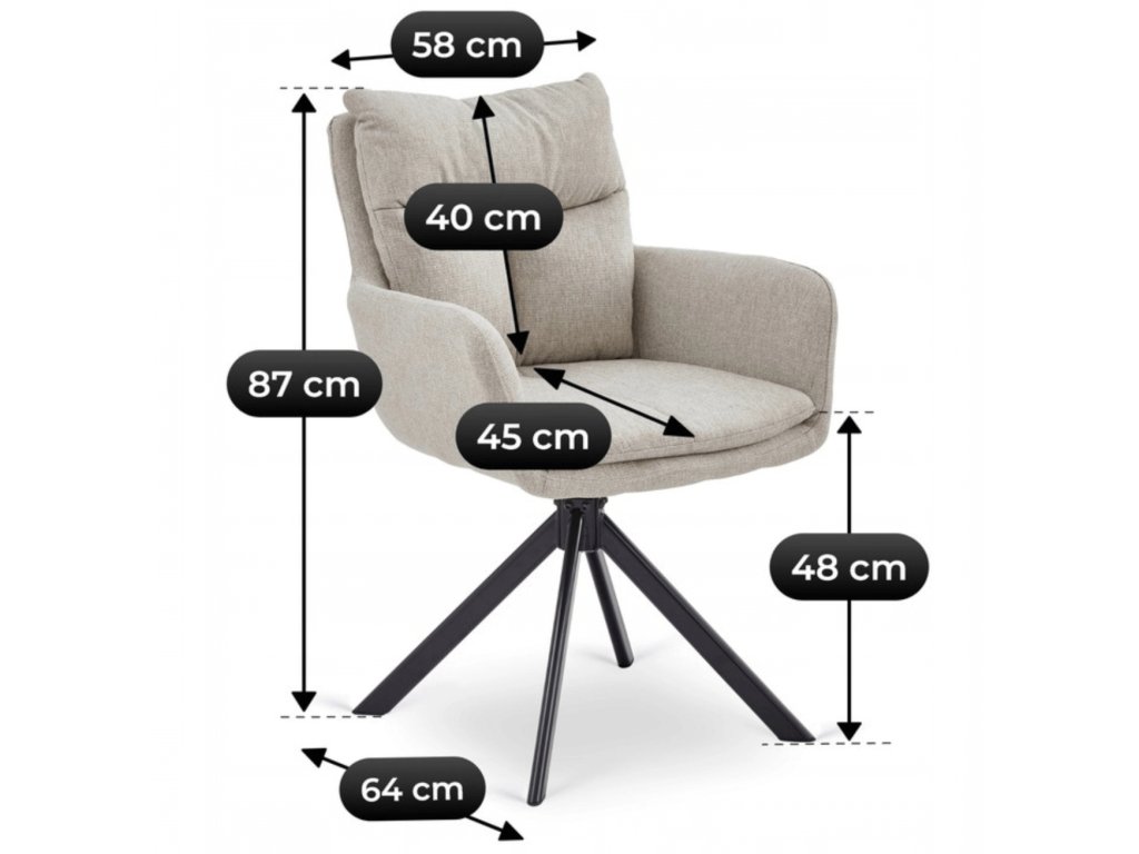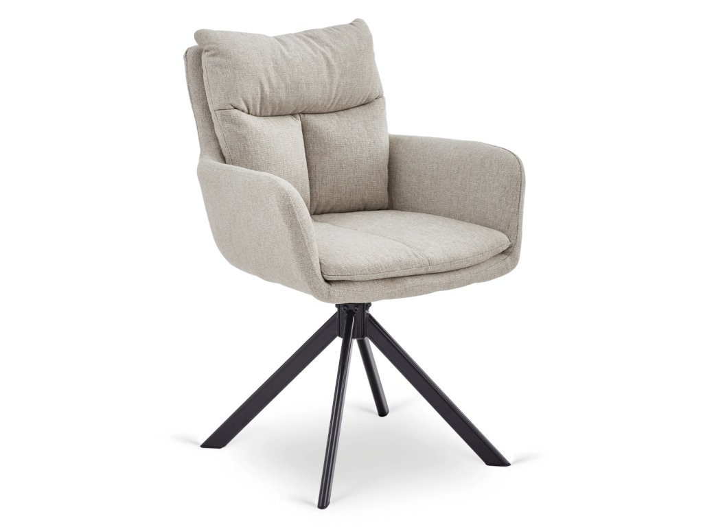 Oblazinjenje iz kakovostne tkanine je mehko, prijetno na dotik in odporno pri vsakodnevni uporabi. Eleganten bež odtenek daje notranjosti harmonijo in se enostavno kombinira s svetlim in temnim pohištvom. Stabilna kovinska konstrukcija v črni barvi zagotavlja varno uporabo in dolgo življenjsko dobo.