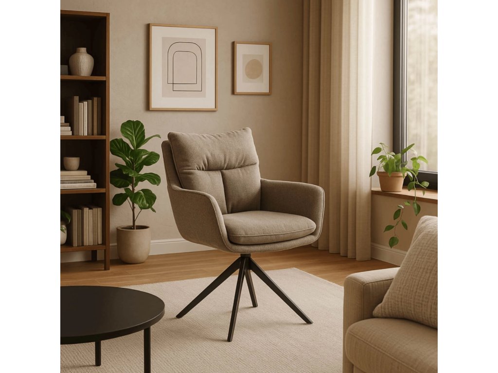 Vrtljivi jedilni stol svetlo rjava tkanina Paul
