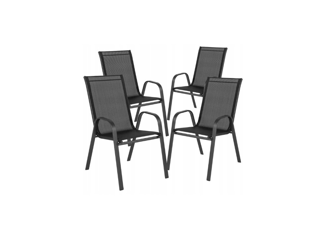 Vsak stol ima udobne naslone za roke, visoko naslonjalo in sedežni del iz zračne tkanine. Zahvaljujoč možnosti zlaganja prihranite prostor v zimskem času ali pri shranjevanju.