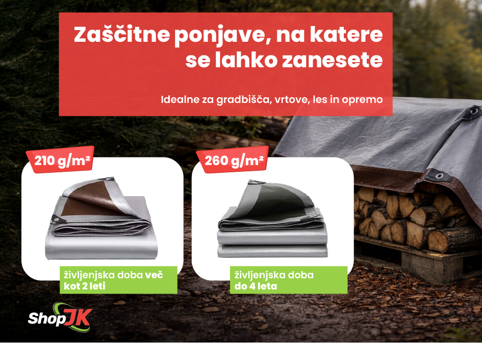 Ponjava za pokrivanje - zaščitna cerada, odporna proti zmrzali, ščiti pred soncem, dežjem in snegom. Domači mojstri lahko izbirajo med različnimi barvami, velikostmi in težami