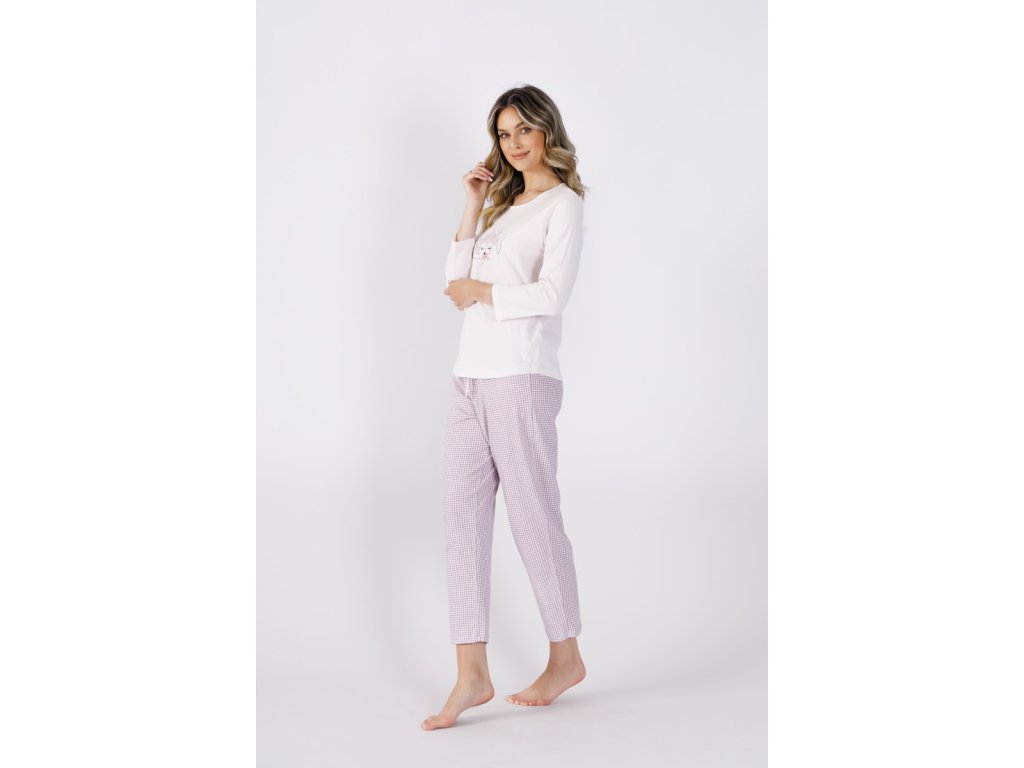 Žensko bombažno pižamo z dolgimi hlačami in motivom