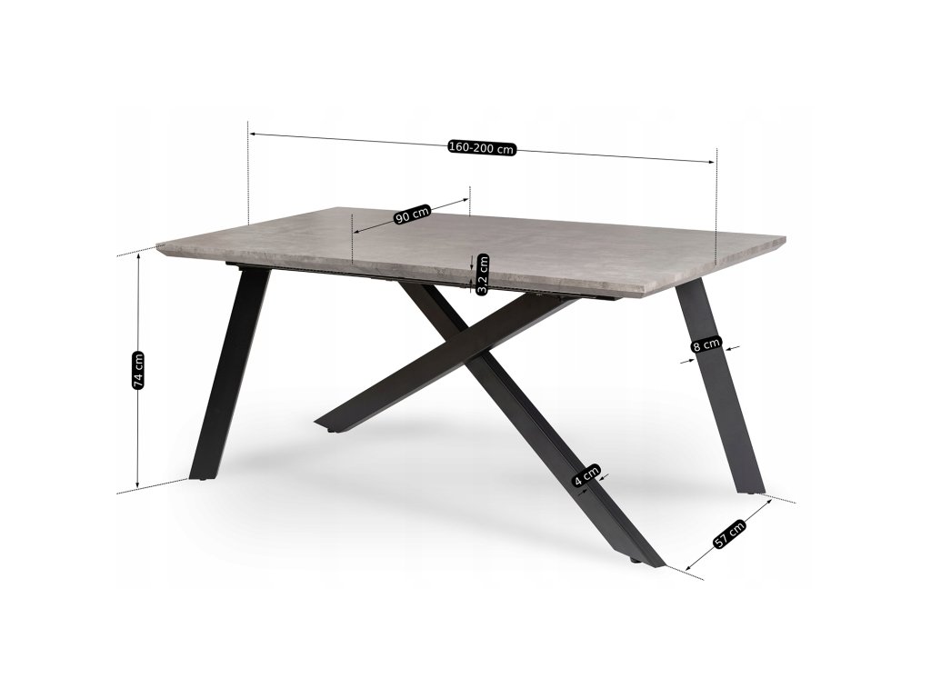 Zlozljiva miza Hamilton 160-200cm siv beton