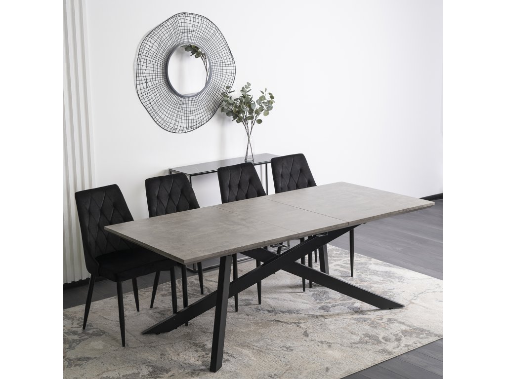Zložljiva miza Hamilton, dimenzije: 160 x 90 x 74 cm, material mize: 3,2 cm MDF plošča, barva mizne plošče: siv beton, črne jeklene noge.