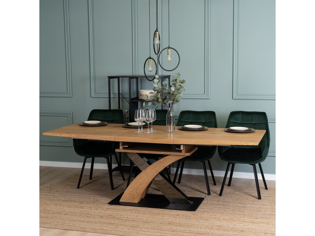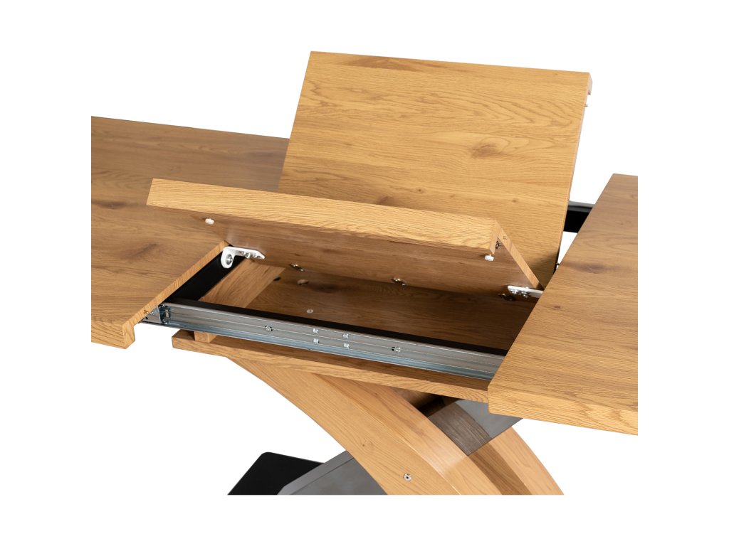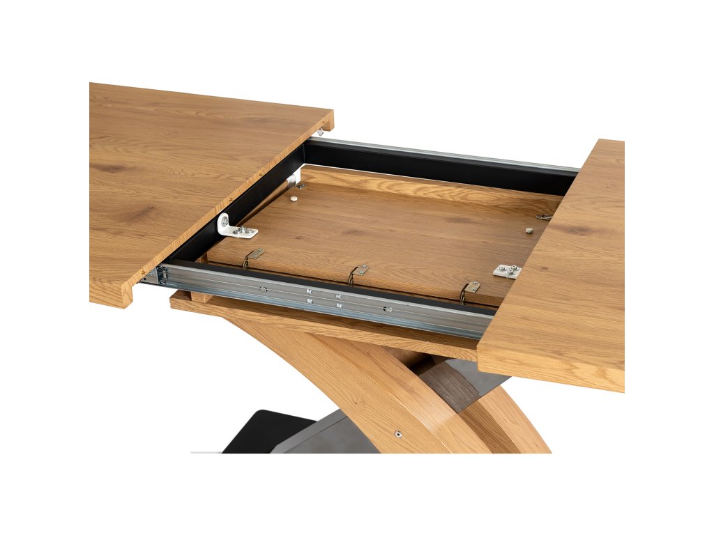 Mizna plošča ima debelino 3,2 cm in je izdelana iz laminirane plošče MDF v barvi Craft hrast. Je odporna na praske in odrgnine. Miza ima funkcijo raztegovanja. Enostavno jo raztegnete, vstavite dodatno desko in takoj boste imeli za 60 cm večjo mizo.